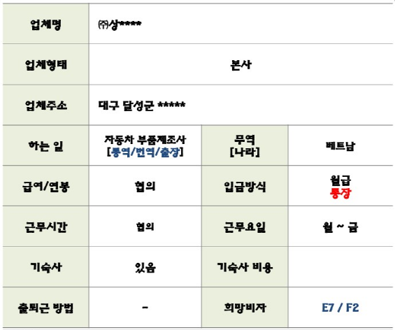 | [F2 / E7 có khả năng] F2 / E7 가능한 업체 [대구광역시 달성군] | |||